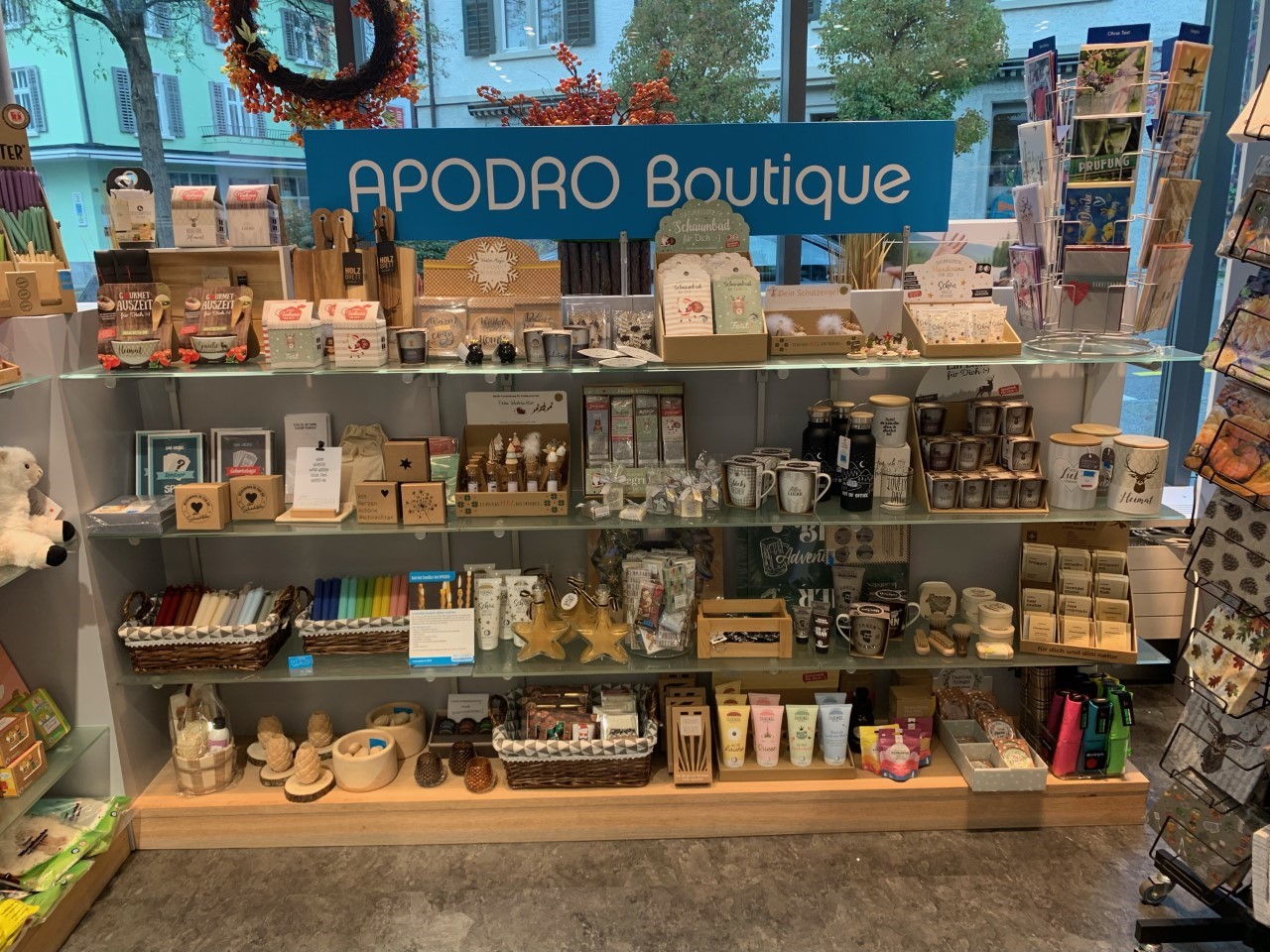 Wir bei APODRO sind startklar. Von den Minigeschenken für den Adventskalender bis zum grossen Kosmetikset für unter den Christbaum. Bei uns finden Sie sicher das passende Geschenk. Kommen Sie vorbei und lassen Sie sich durch unsere Weihnachtsausstellung inspirieren. Wünschen Sie eine Beratung zu einem passenden Duft? Oder können wir Ihnen bei der Geschenksuche behilflich sein? Wir sind gerne für Sie da und freuen uns auf Ihren Besuch.